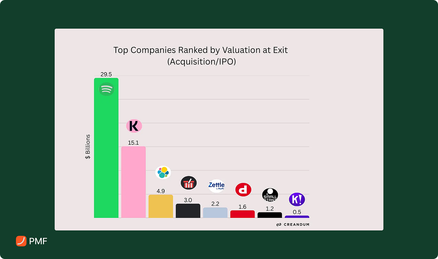 Creandum today manages around $2.2B, has raised about €1.6B across seven funds, and has backed roughly 172 companies, with 117 still active and 54 exited (Assets Under Management: $2.2b). Around 24 of those have reached unicorn status, 19 in Europe alone, including Bolt, Klarna, Spotify, Trade Republic, Factorial, Kahoot!, Depop, Lovable and others.