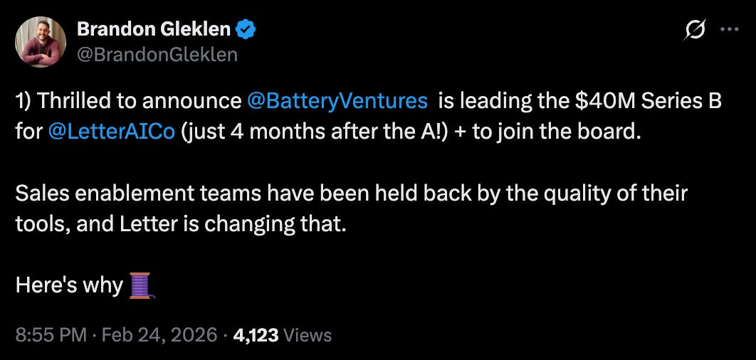 đš Letter AI just closed one of the cleanest, strongest Series B rounds of 2026.