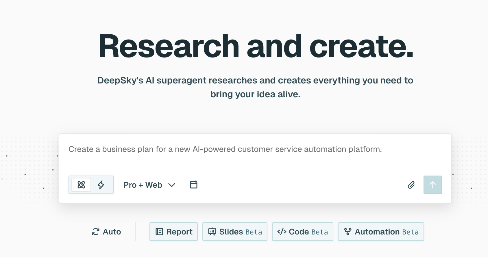 DeepSky meets users at the point of uncertainty, doing deep, cross-source research and structured reasoning before anyone touches a workflow. By the time an output exists, it’s already shaped into something actionable.