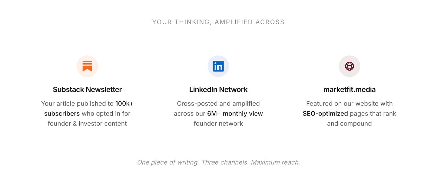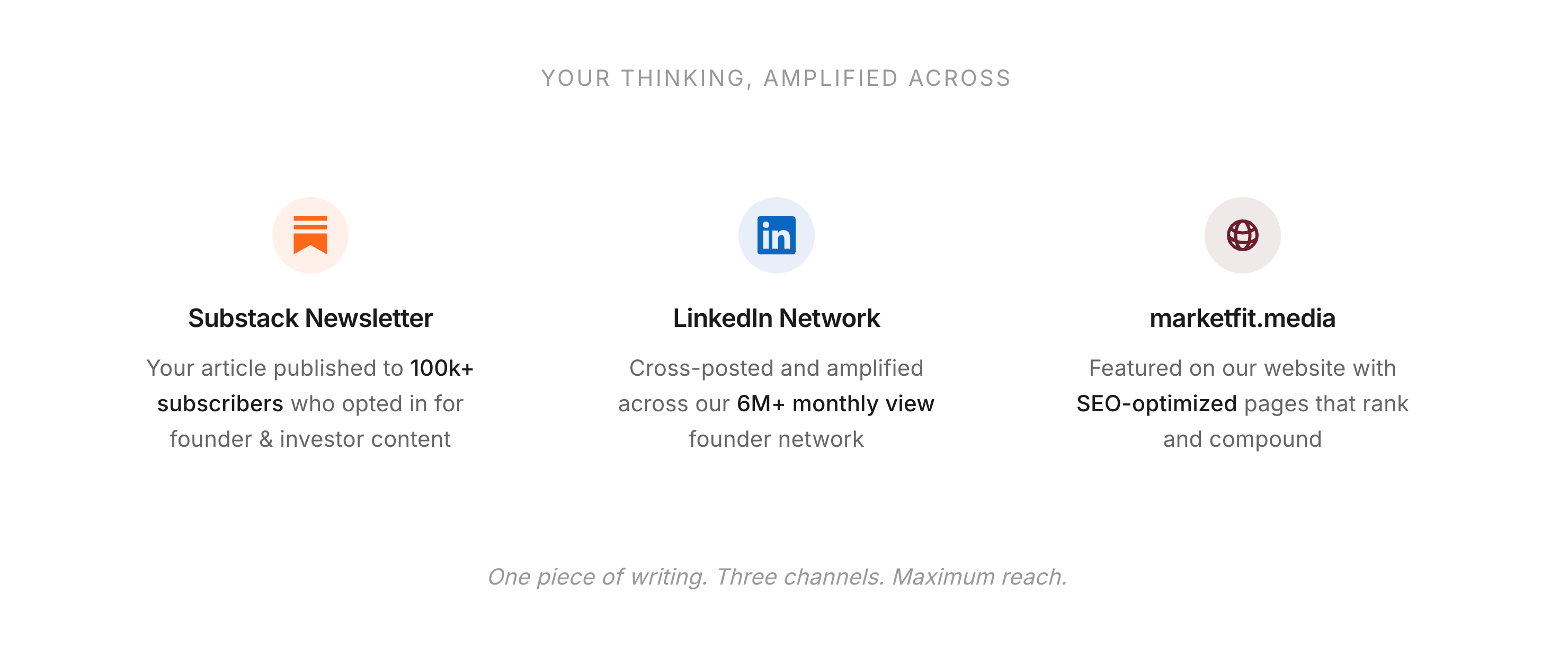 We distribute their writing to tens of thousands of founders via newsletter and LinkedIn.
