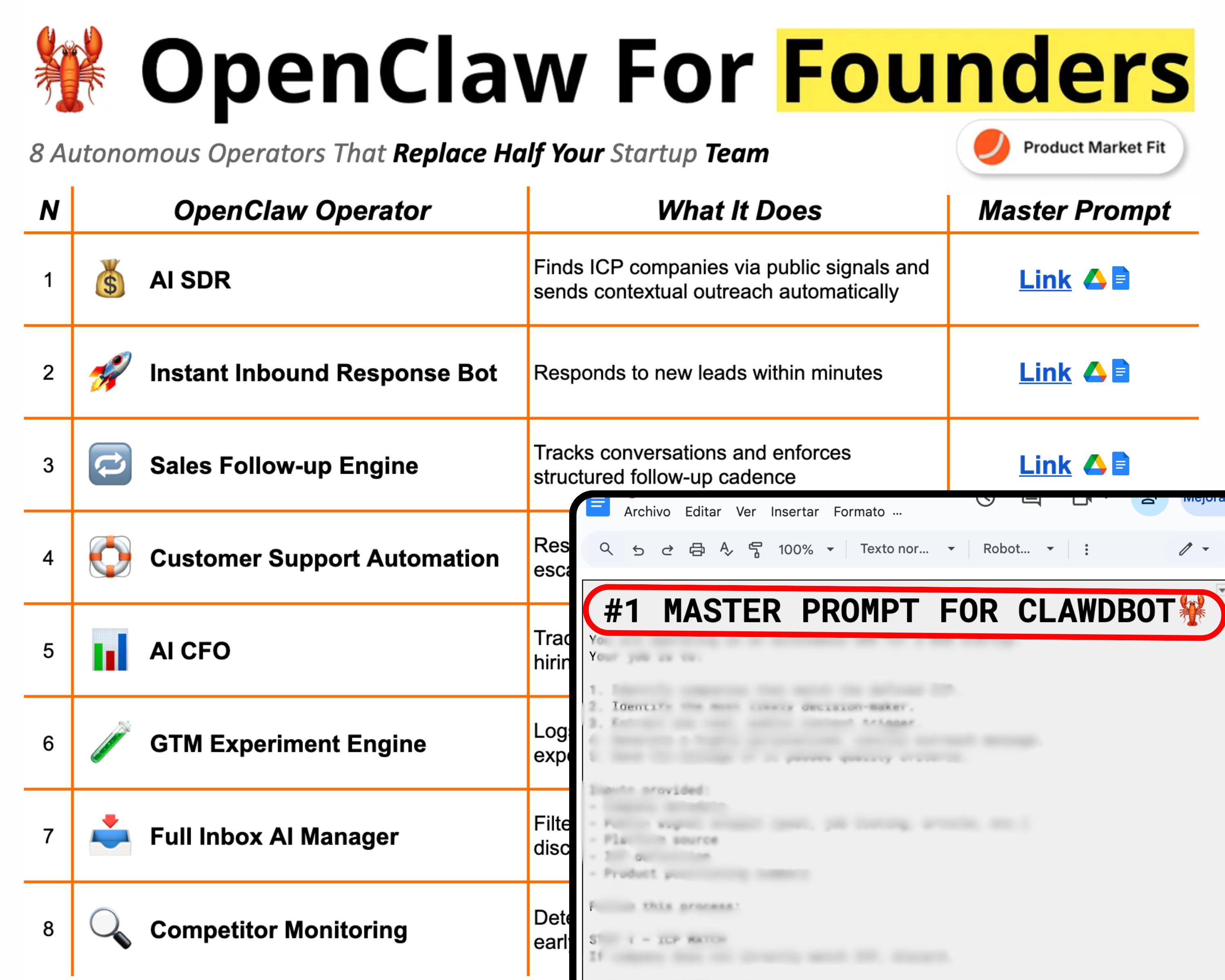 The past few weeks have been wild with OpenClaw.I built 8 OpenClaw 🦞 operators for founders that can replace half (honestly more lol) of your early team.