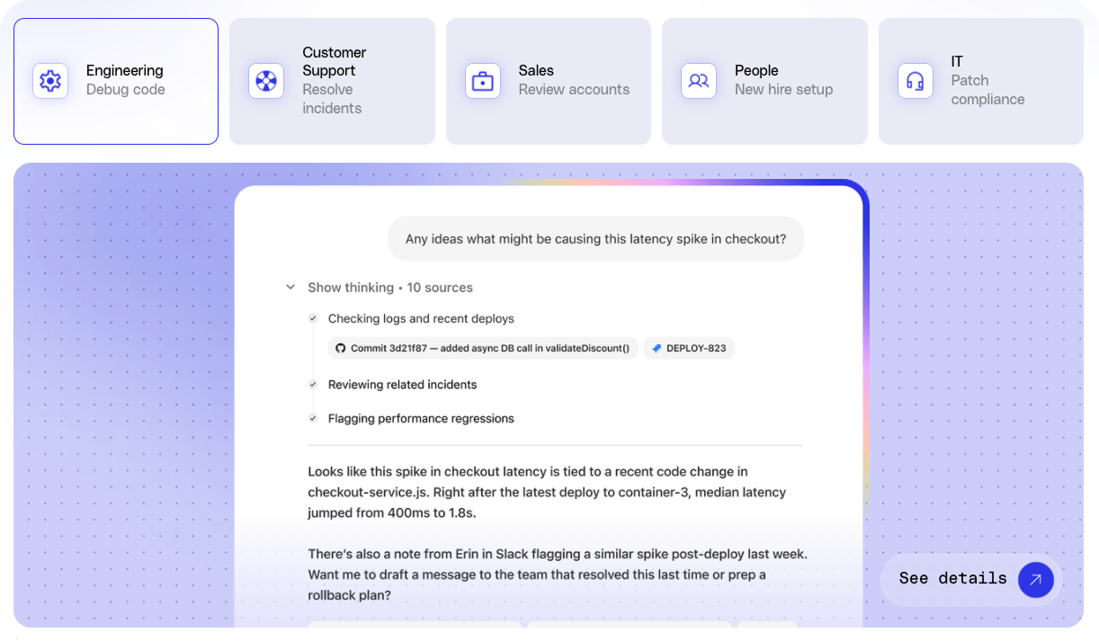Inside, it’s chaos: omnichannel customers, fragmented systems, high turnover, and a constant need to move fast. Glean’s own framing for retail is basically: connect the tools, make the knowledge usable, and remove the “tool switching tax.”