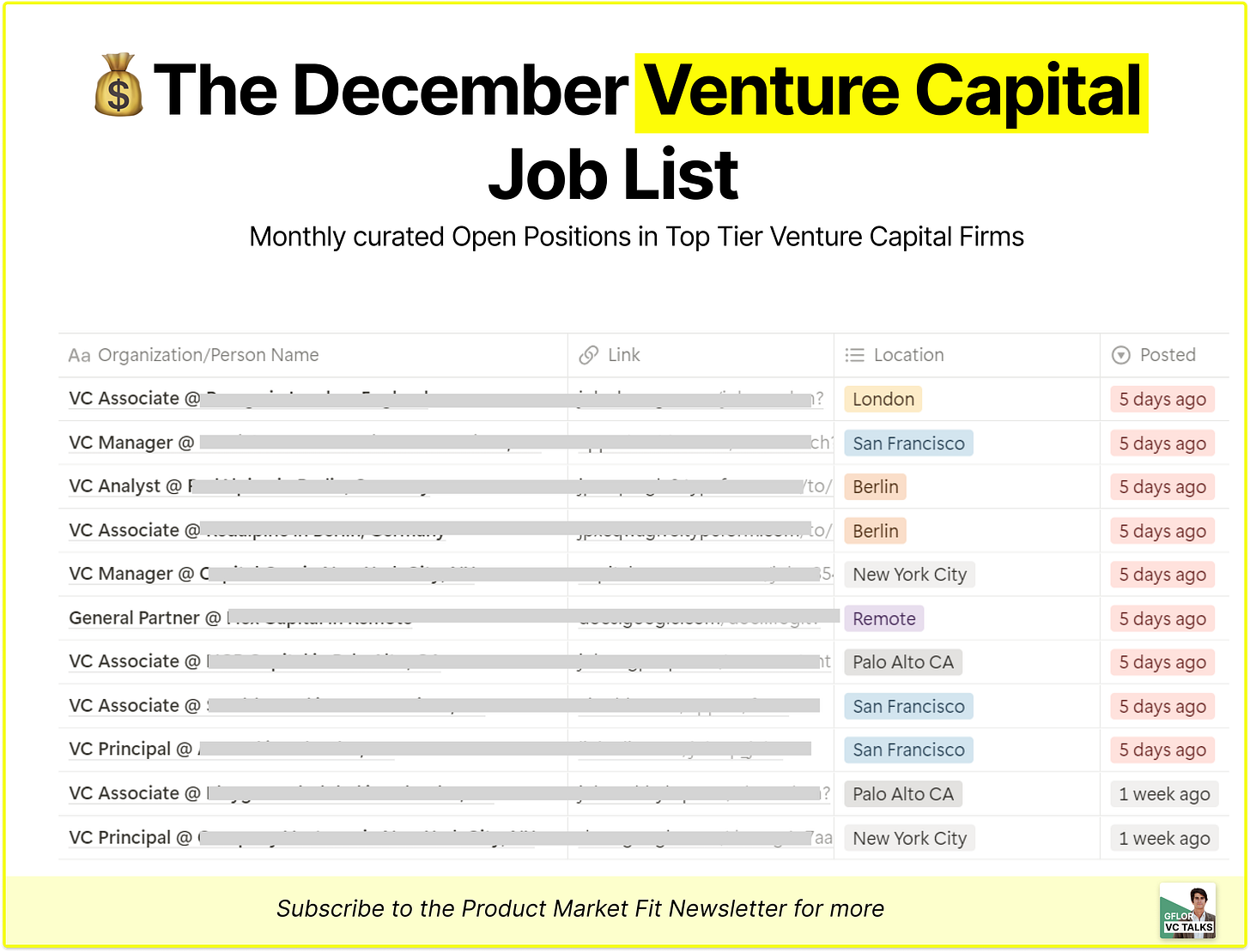 Today, Iโm sharing this list of Decemberโs 11 new open highly curated Venture Capital Positions ๐ฅ