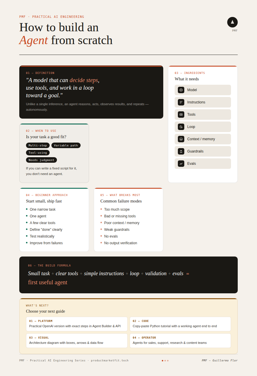 This guide is for someone who has never built an agent before and may have little or no programming knowledge. And this is just the beginning.